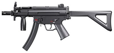Heckler & Koch MP5K-PDW CO2 submachine gun Uses 12-gram CO2 cartridges 40-rd removable banana mag holds steel BBs Semi-auto Recoils like the firearm Folding stock Forward grip Lightweight, easy to shoot ... Semi-auto CO2 BB submachine gun...