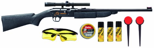 This kit is all inclusive...everything you need for safe, fun shooting action is here: The Model 840B Grizzly air rifle, 4x15 riflescope, shooting glasses, 2 ShatterBlast stakes, 8 ShatterBlast targets, and PrecisionMaxTM pellets and BBs.